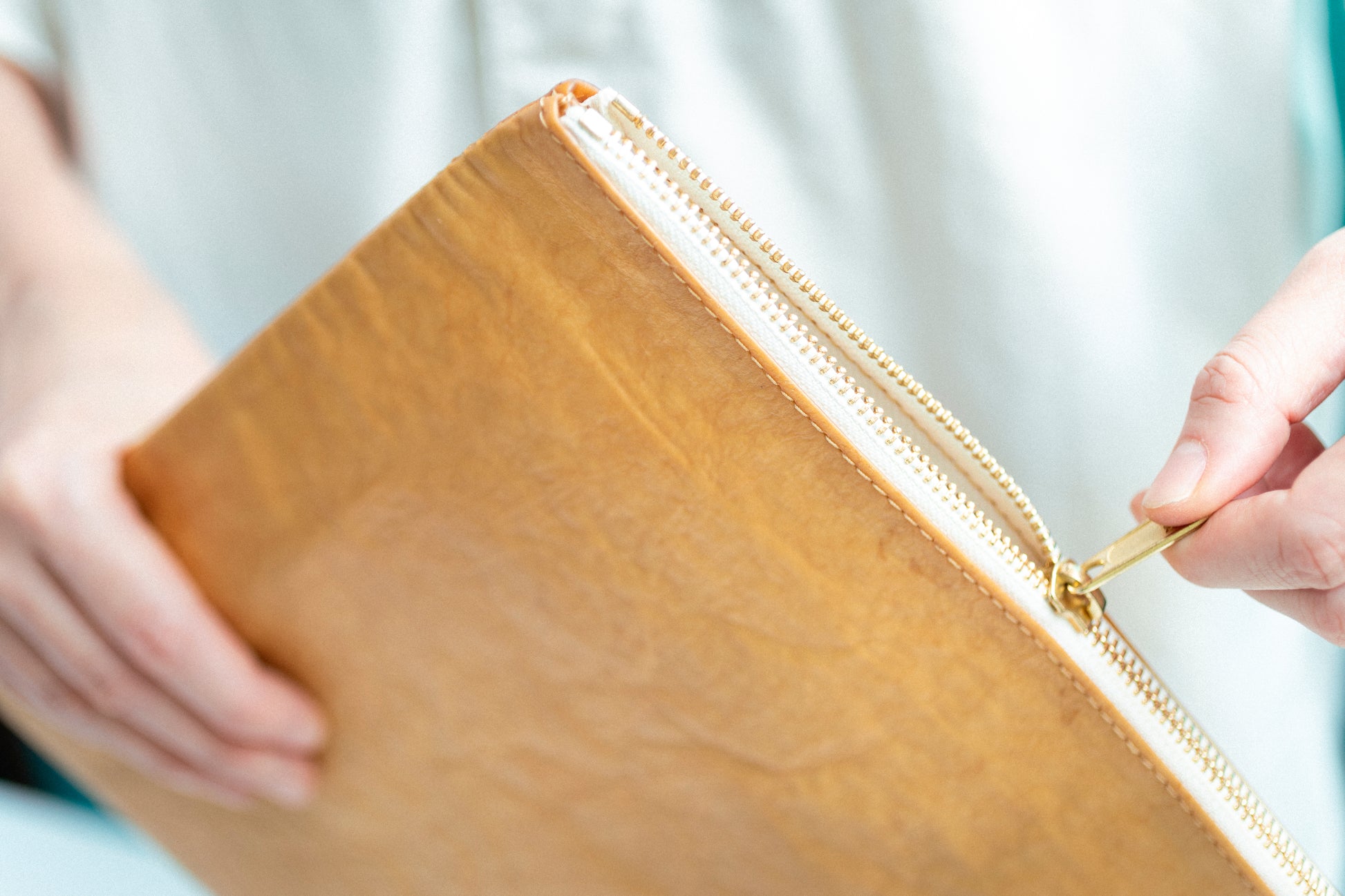 | 素材 | 表:Pelliqua® 裏地:綿 ファスナー:金属・ゴールド |