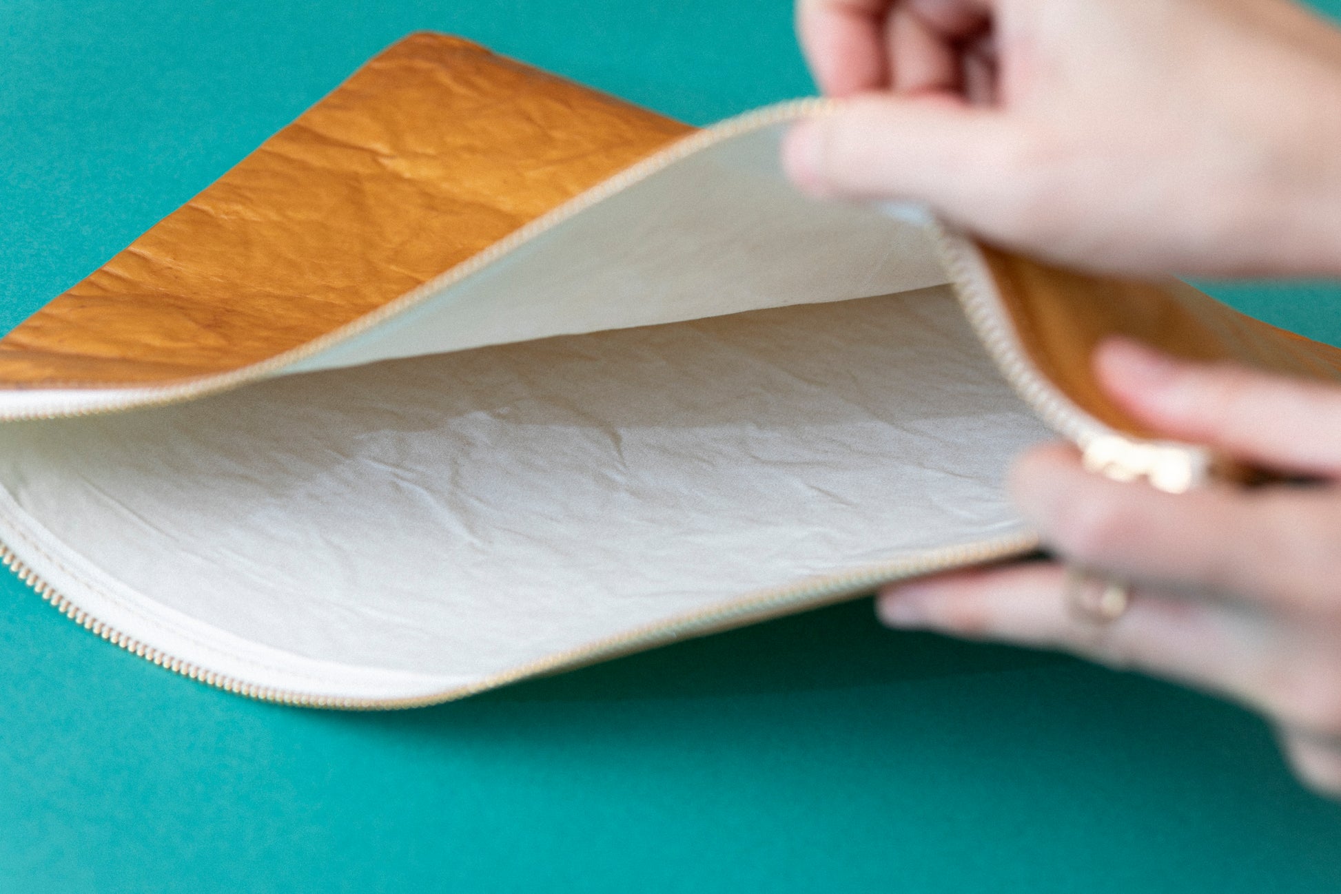 BHOPE独自の素材が最大限に引き立つミニマルさでありながら、折り返すことでクラッチバッグ仕様にもなり、仕事以外のシーンでもフィットするデザインです。